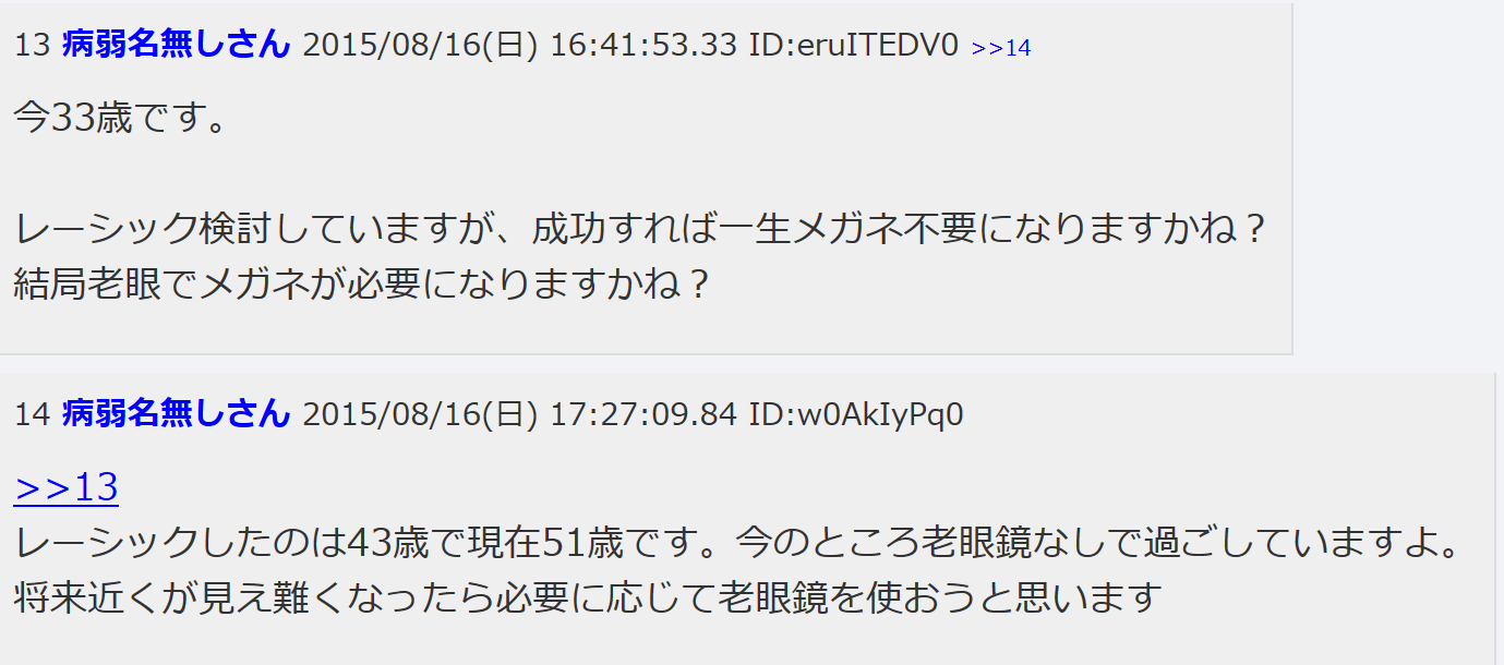 このスレッドでは主にレーシック手術を受けた時の様子などを書かれています。
