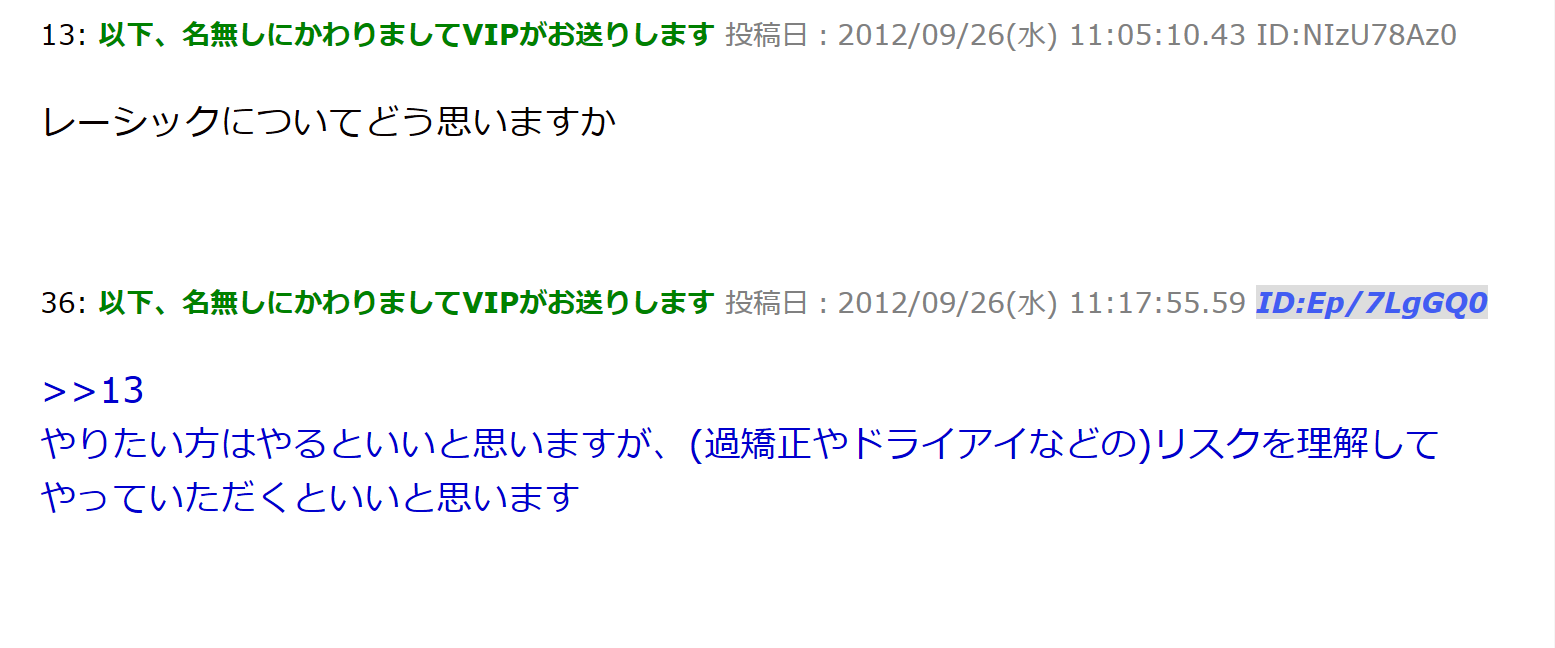 レーシック2chスレ5:『眼科医だけど質問ある?【飛蚊症・レーシック・使い捨てコンタクトなど】』